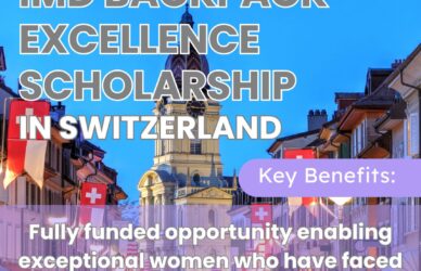 August 27, 2025 0 Comments IMD MBA – BackPack-Excellence Scholarship for WomenThe BackPack-Excellence Scholarship for Women is a distinguished, fully funded scholarship that empowers ... Read More