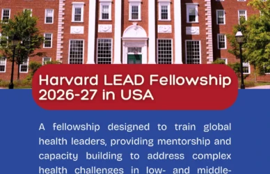 December 20, 2025 0 Comments Harvard LEAD Fellowship – Harvard Global Health InstituteThe Harvard LEAD Fellowship (Learn, Engage, Advance, Disrupt) is a fully funded leadership ... Read More