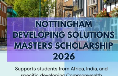 December 20, 2025 0 Comments Developing Solutions Masters Scholarship – University of NottinghamThe Developing Solutions Masters Scholarship is a prestigious funding opportunity for international students ... Read More