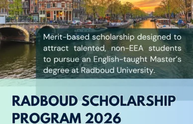 December 20, 2025 0 Comments Radboud Scholarship Programme – Radboud UniversityThe Radboud Scholarship Programme is a competitive funding opportunity designed to support outstanding ... Read More