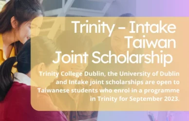 April 28, 2024 0 Comments Trinity – Intake Taiwan Joint ScholarshipTrinity – Intake Taiwan Joint Scholarship Trinity College Dublin, the University of Dublin and Intake International ... Read More
