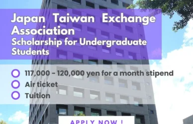 March 22, 2024 0 Comments Japan-Taiwan Interchange AssociationJapan Taiwan Exchange Association (Scholarship for Undergraduate Students) Organization Japan Taiwan Exchange Association ... Read More