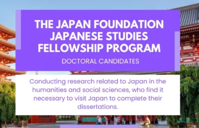 March 22, 2024 0 Comments The Japan Foundation Japanese Studies Fellowship program (Doctoral Candidates)Japanese Studies Fellowships These fellowships provide scholars and researchers in the field of ... Read More