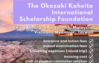 March 22, 2024 0 Comments Okazaki Kaheita international Scholarship FoundationThe Okazaki Kaheita International Foundation Organization The Okazaki Kaheita International Foundation – Application ... Read More