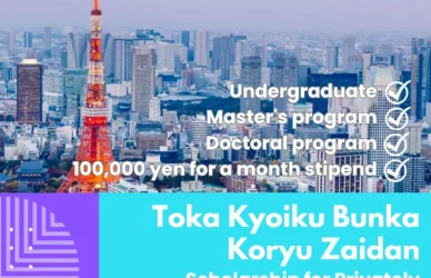 March 22, 2024 0 Comments Toka Kyoiku Bunka Koryu Zaidan (公財)東華教育文化交流財四Scholarship for Privately Financed Students of China (Toka Kyoiku Bunka Koryu Zaidan) Foundation ... Read More