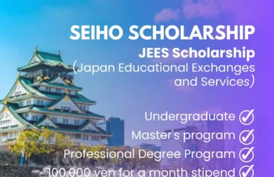 March 22, 2024 0 Comments JEES Scholarship (Japan Educational Exchanges and Services (JEES)) Seiho ScholarshipSeiho Scholarship (JEES Sponsor-Crowned Scholarship Organization Japan Educational Exchanges and Services (JEES) Application ... Read More