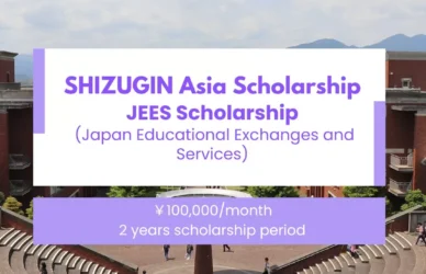 March 21, 2024 0 Comments JEES Scholarship (Japan Educational Exchanges and Services (JEES)) SHIZUGIN Asia ScholarshipScholarships for overseas students The following scholarships are available to overseas students. The ... Read More