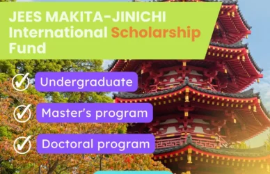 March 21, 2024 0 Comments JEES Scholarship (Japan Educational Exchanges and Services (JEES)) MAKITA_JINICHI International Scholarship FundJEES MAKITA-JINICHI International Scholarship Fund (JEES Sponsor-Crowned Scholarship) Organization Japan Educational Exchanges and ... Read More