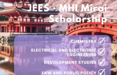 March 22, 2024 0 Comments JEES Scholarship (Japan Educational Exchanges and Services (JEES)) MHI Global ScholarshipJEES・MHI Mirai Scholarship (JEES Sponsor-Crowned Scholarship) Organization Japan Educational Exchanges and Services (JEES) ... Read More