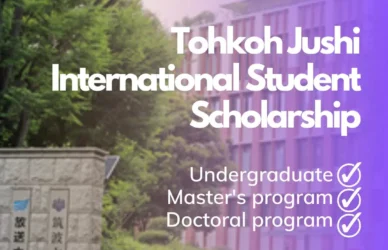 March 22, 2024 0 Comments JEES Scholarship (Japan Educational Exchanges and Services (JEES)) Tohkoh Jushi International Student ScholarshipTohkoh Jushi International Student Scholarship (JEES Sponsor-Crowned Scholarship) Foundation Japan Educational Exchanges and ... Read More