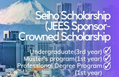 March 21, 2024 0 Comments Foundation of Seiho ScholarshipSeiho Scholarship (JEES Sponsor-Crowned Scholarship) Organization Japan Educational Exchanges and Services (JEES) Application ... Read More