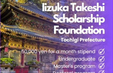 March 14, 2024 0 Comments Iizuka Takeshi Scholarship FoundationIizuka Takeshi Scholarship Last Update: Aug. 22, 2023 Organization Iizuka Takeshi Scholarship Foundation ... Read More