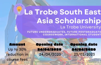 March 13, 2024 0 Comments La Trobe University La Trobe South East Asia Scholarship S1/S2La Trobe South East Asia Scholarship Amount Up to 30% reduction in course ... Read More