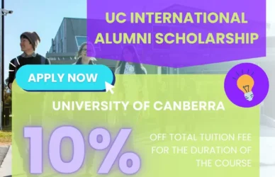 March 13, 2024 0 Comments University of Canberra UC International Partnership High Achievers Scholarship S1Overview Awarded to commencing international articulation students applying to a UC Bachelor coursework ... Read More
