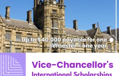 March 13, 2024 0 Comments The University of Sydney Vice-Chancellor’s International Scholarships Scheme S1/S2Vice-Chancellor’s International Scholarships Scheme A scholarship for exceptional international students Up to $40,000 ... Read More