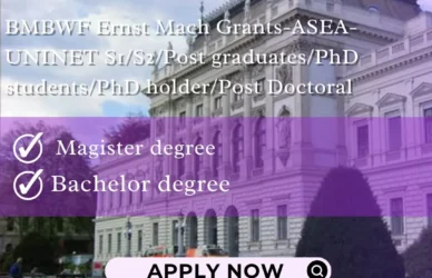 March 9, 2024 0 Comments BMBWF Ernst Mach Grants-ASEA-UNINET S1/S2/Post graduates/PhD students/PhD holder/Post DoctoralErnst Mach Grant – ASEA-UNINET Country of origin: Indonesia; Malaysia; Philippines; Thailand; Viet ... Read More