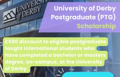 March 9, 2024 0 Comments University of Derby Vice-Chancellor’s Scholarship S1/S2The Vice-Chancellor’s Scholarship provides one full year’s tuition fees to a limited number ... Read More