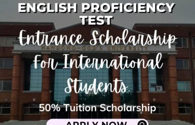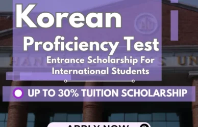 March 8, 2024 0 Comments Handong Global University Entrance Scholarship for International Students (With Official Language Test Scores) : English LANGUAGE PROFICIENCY S1Eligibility • Students with a valid English Language Score (at the time of ... Read More