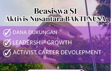 March 5, 2024 0 Comments Beasiswa Aktivis Busantara (BAKTI NUSA) Beasiswa Mahasiswa Aktivis S1PROFIL BAKTI NUSA BAKTI NUSA merupakan program penumbuhan kepemimpinan aktivis mahasiswa untuk membentuk ... Read More